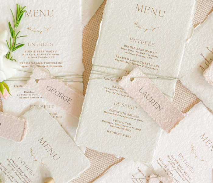 Elevate your wedding day with our beautiful Banquet Stationery, from Table Names & Numbers, Menus, and Place Cards we have everything you need to bring your tablescape to life by adding personalised touches your guests will remember forever.